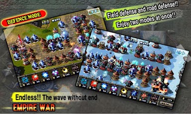 [Empire War] is a real-time strategy game performed by having a huge war between mankind and chaos - other races such as devils or monsters – as the background. The game can be played easily even by a player encountering the game for the first time and made to experience the enjoyment instantly through the control system optimized for mobile devices and simple screen configuration. The player is also able to spread colorful strategies through the growth system to reinforce the player’s own camp using various methods or the configuration of six hero characters representing two camps and 14 types of units having unique personality.